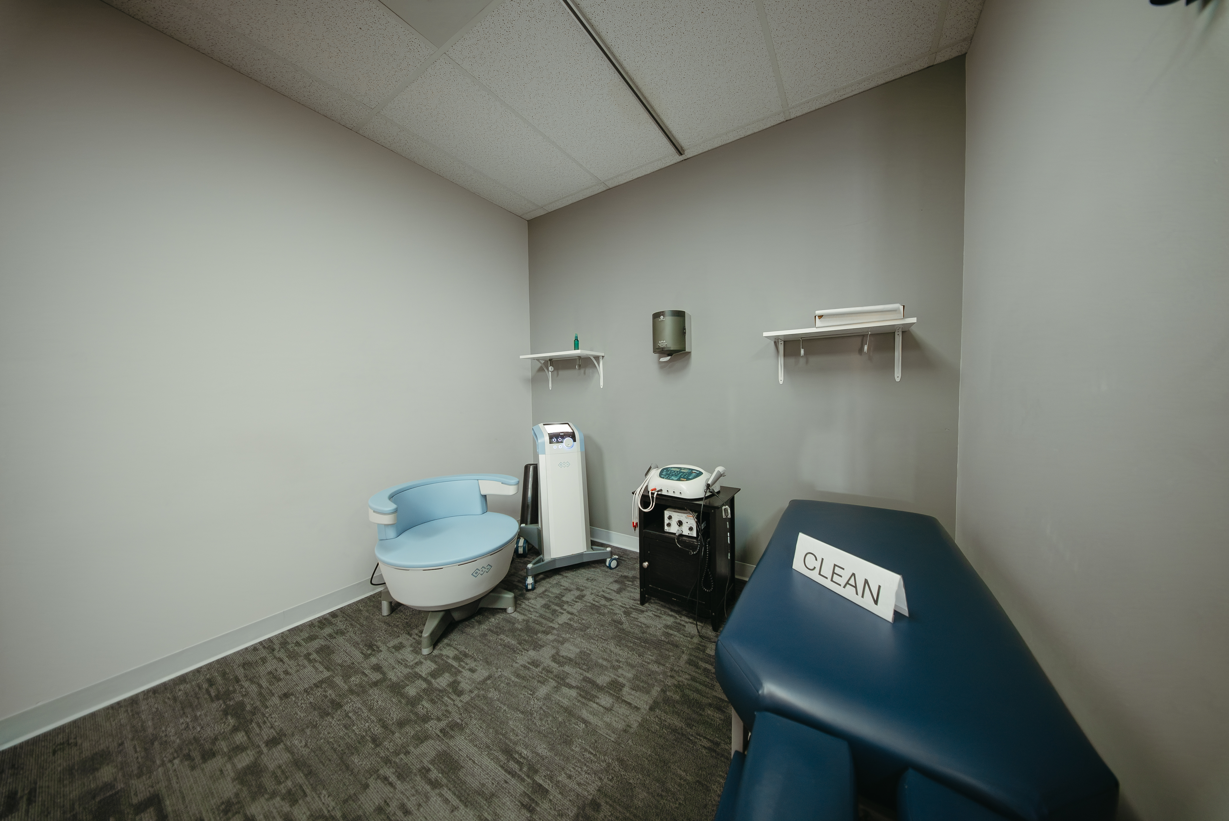 30 minute treatments sitting on the emsella chair full clothed doing 11,000 kegals in 30 minutes. Significantly reduces incontinence.