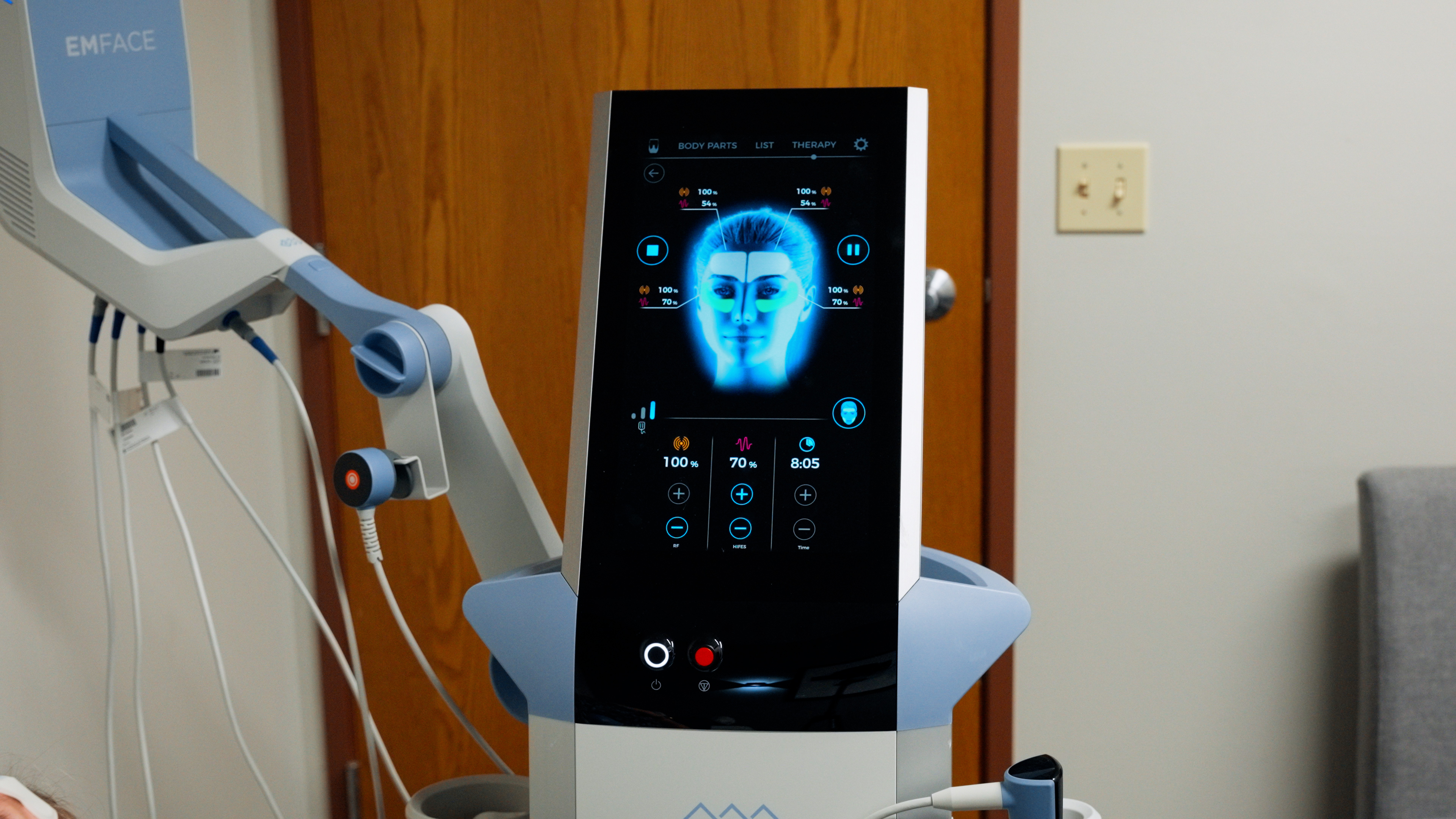 Non-invasive cosmetic treatment that combines radiofrequency and high-intensity electromagnetic stimulation (HIFES) to improve facial appearance with natural results.